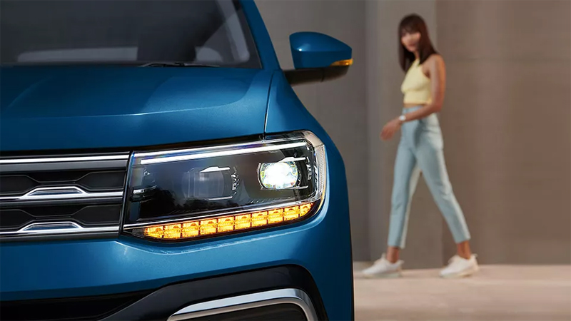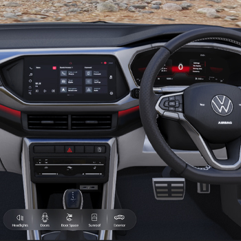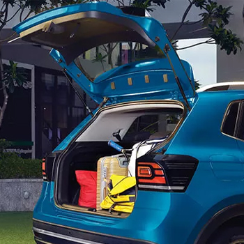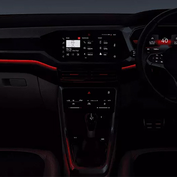 With updated premium interior design, the VW Taigun Chrome inside features give a luxurious feel. These interior features include laser red ambient lighting, a large infotainment system containing a GT welcome message, and a dual-tone digital dashboard. Further, it includes a red-colored caliper on the front side, dual-tone leatherette seat upholstery with red stitching, wild cherry red-colored inside stitching, and Amrur grey classy decor. The large luggage room measures 385 L, which is further extended up to 1,405 L, which helps you carry enough luggage. With its spacious interior, it can easily accommodate five passengers. To have a detailed examination of the Taigun Chrome interiors, visit the PPS Volkswagen Showroom in Guwahati.