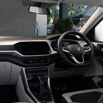 The stylish and stunning interiors of the Volkswagen Taigun are loaded with premium specifications that give a luxurious feel. It includes a luxurious dark-themed dual-tone interior with a glossy black dashboard, comfortable black leatherette seat upholstery covered with premium fabric, ambient lighting, and a spacious 385 L luggage space. An electric sunroof on the top is an added advantage for this SUV. Making your drives smoother, comfortable, and hassle-free, the Taigun leads on the roads, giving you utmost safety. Get a closer experience of the VW Taigun by reaching out to the PPS Volkswagen dealer in Tirupati.